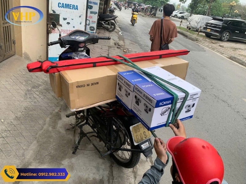 Máy thủy bình và phụ kiện được đóng gói cẩn thận để giao đến tay khách hàng