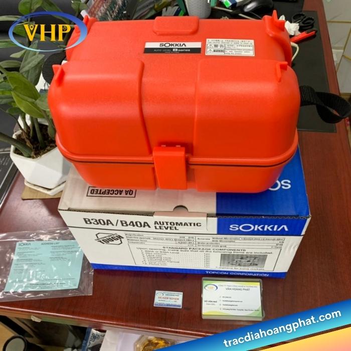 Bộ máy thủy bình Sokkia B40A gồm máy và các phụ kiện đi kèm như: chân nhôm, mia rút 5m
